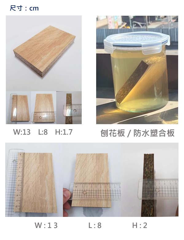 防水性能性能 耐燃與防水的新突破泡水24UP↑穩搭搭只要是木材材質,其實本身都難逃遇水會吸水膨脹或散架的情形,人造板也自然也不例外;一般人造板最大的缺點是容易因為受潮而產生斑點以及板材膨脹變型,同時防水及防火功能沒辦法並存只能選購單一功能。 而我們在擁有高效的耐燃性能外,同時還擁有超高的防水性,能達到24小時浸水,厚度的膨脹率為1.5%,且結構不會受損散架,達到防水與防火二種極端性能共存的優異防災表現。 八天 192 H 暴力測試 將防水塑合板、本質阻燃板、密度板做長達八天的泡水對比測試,可以很簡單的看出防水性能 預防火災新選擇 配合阻燃概念的室內設計,便能在火災初期時抑制火焰延燒範圍,讓火災無法藉由延燒轉為大火,同時在火源熄滅後也能自動熄滅讓火災停,或能提早發現延長黃金逃生時間